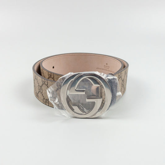 Gucci GG Supreme Beige Belt With Silver G Buckle